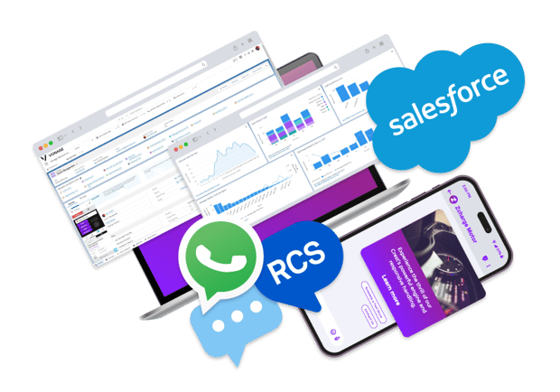신뢰할 수 있는 인터페이스에서 직접 단문메시지(SMS), RCS, WhatsApp을 원활하게 관리할 수 있습니다. Vonage Agentforce Marketing(구 Salesforce Marketing Cloud)은 워크플로를 간소화하고 전달 및 동의 이벤트에 대한 완벽한 가시성을 제공하며 미래에 대비한 RCS를 지원합니다. 즉 다음과 같은 이점으로 팀이 보다 빠르고 스마트하고 매력적인 캠페인을 실행할 수 있도록 지원합니다.